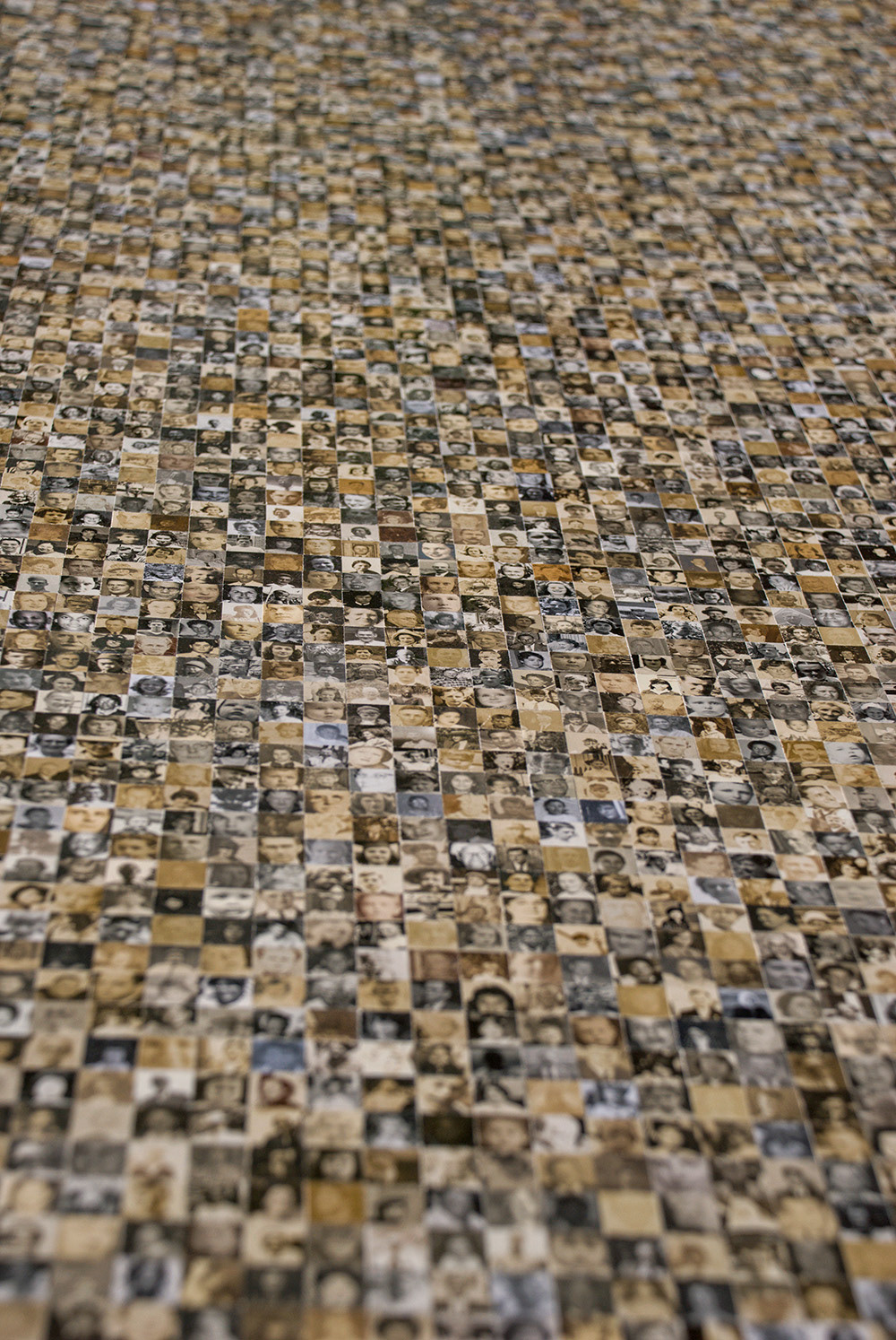In Chronicle I combine 1/2” and 1” square pieces cut from found photographs to examine the fragmentation of memories. When recalling our childhood, we may remember the shoes our father always wore or the way our mother held her hands: a part represents the whole. Photographs function in a similar manner. They do not show a whole person or an entire life, but instead capture a single moment. These keepsakes help determine some of the pieces of memory that stick with us.